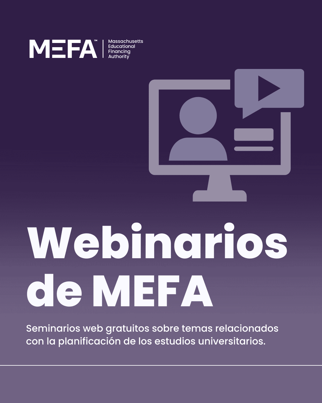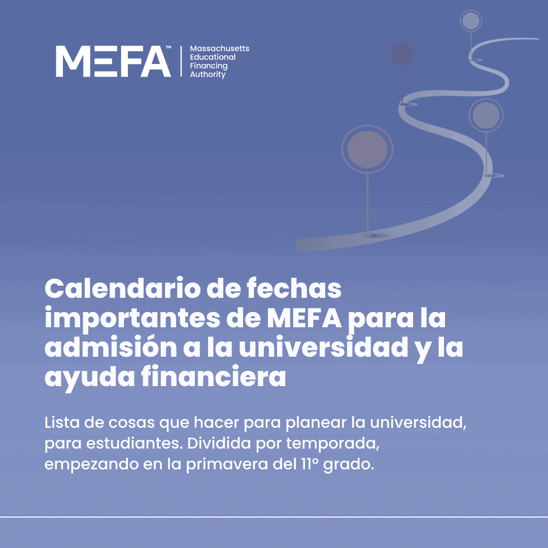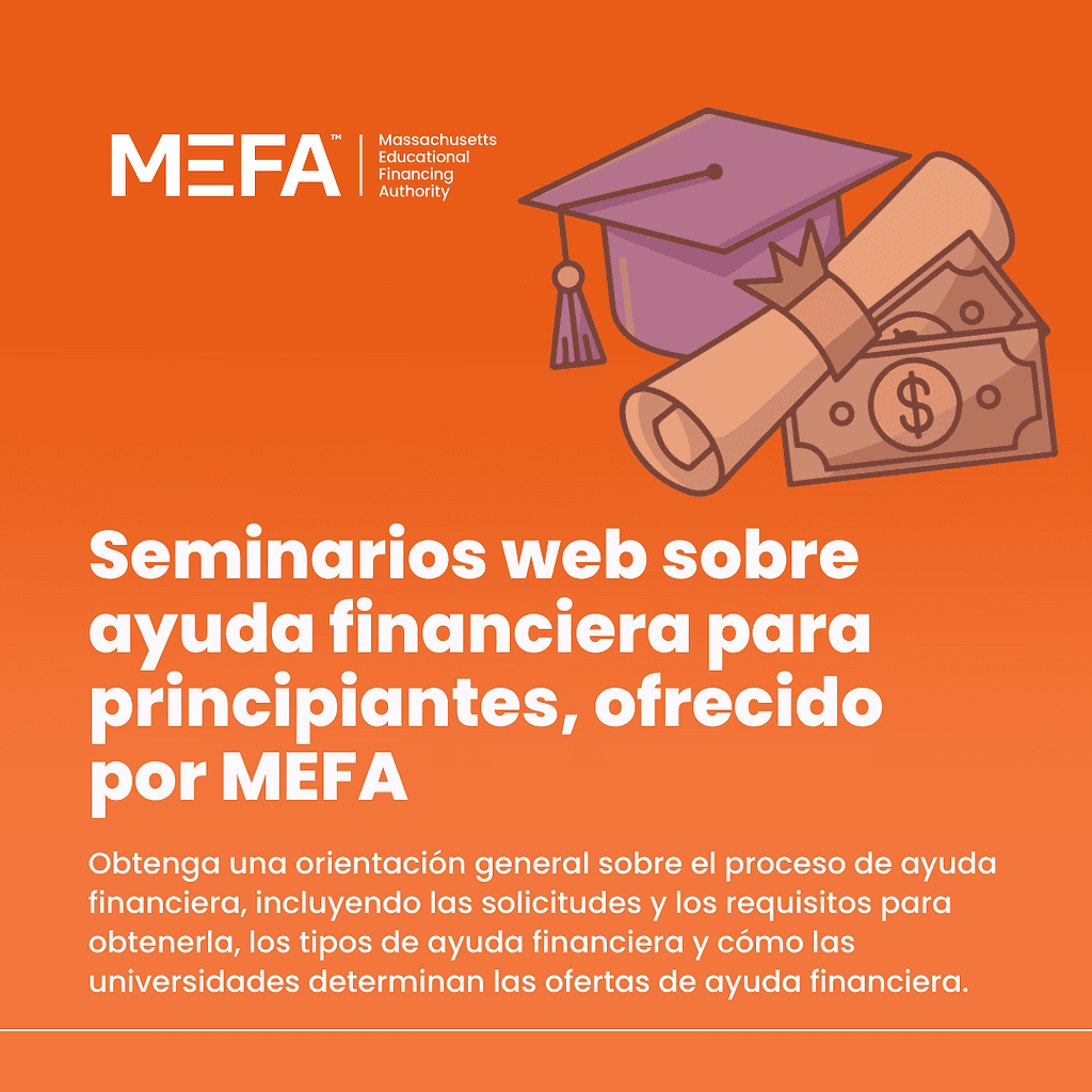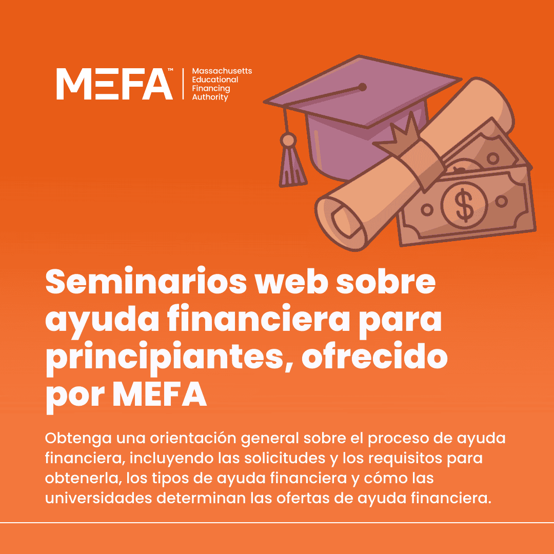 MEFA ofrece seminarios web en vivo sobre cómo ahorrar, planificar y pagar la universidad. Consulte la lista de próximos seminarios web o vea un seminario web pregrabado en mefa.org/webinars.